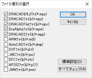 以下のダイアログを表示し、表示するファイル種別を選択します。