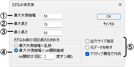 さざなみ線を現在の書き込み属性で変換します。☐の場合は、指定した線分と同じ属性になります。