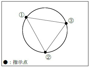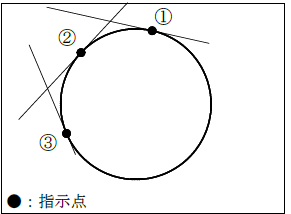 円周上の3点を指示して円を作図します(詳細は【円(3点指定)】コマンドを参照)。
