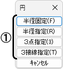 作図する円の種類([半径固定] [半径指定] [3点指定] [3接線指定])を指定し、円を作図します。