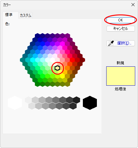 (2)色の欄をクリックすると、カラーダイアログが表示されますので、変更する色を設定します。