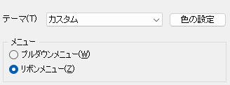 使用するメニューを設定します。「プルダウンメニュー」か「リボンメニュー」を選択します。