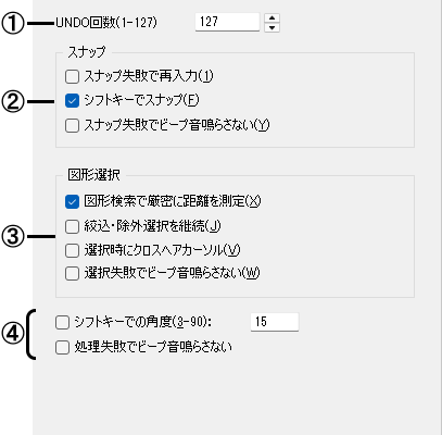 ☑にすると、設定しているスナップモードと指示している位置が違った場合でも、警告音(ビープ音)を鳴らしません。