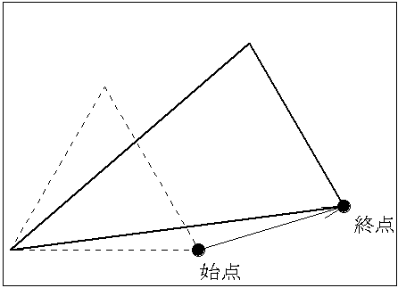 1.移動変形する辺を指定し、基点(始点)を指示します。