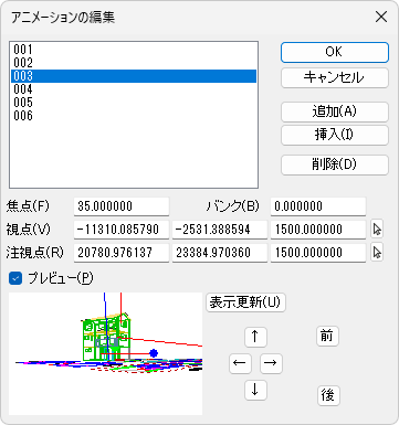 アニメーション用カメラのリストが表示されます(詳細は【カメラ】コマンドを参照)。