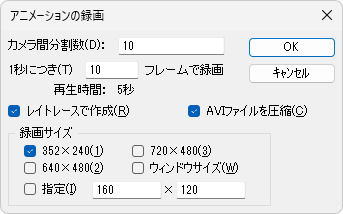アニメーションをレンダリング(レイトレーシング)により作成、録画する場合に☑します。