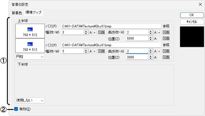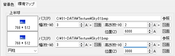 ①上半球と下半球で別々に環境マップの設定方法を選択します。
