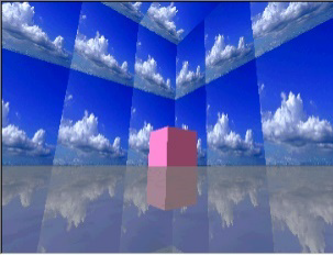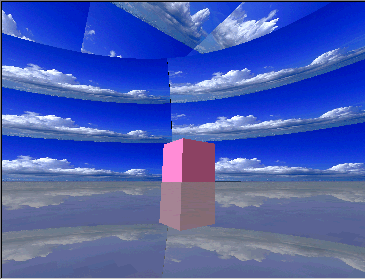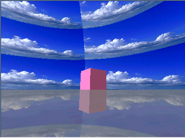 [球]と[平面]の利点を組み合わせたもので、[球]のように全方向から映り込みをし、[平面]のようにゆがみがありませんが、画像によっては画像のつなぎ目がおかしくなります。