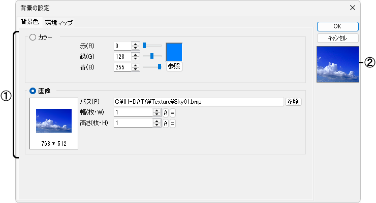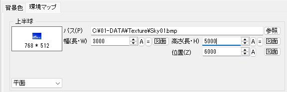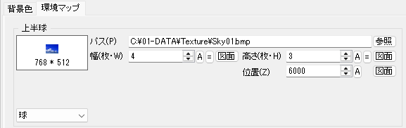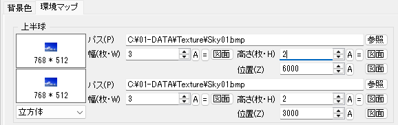環境マップとして使用する画像ファイルのパスを指定します(詳細は〔背景色〕タブを参照)。