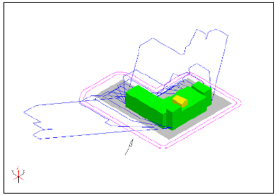 指定したレイヤのポリラインが測定面になり、ポリライン内に時刻日影が作図されます。