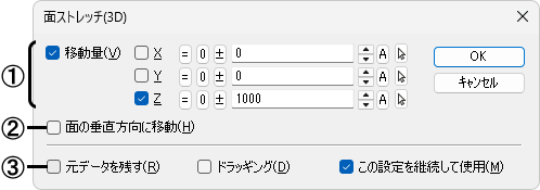 [☑移動量] 例:X、Y、Z=1000、1000、1000 | [☐ 移動量] |