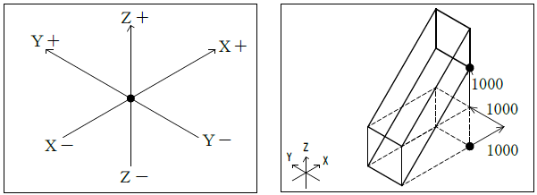 [☐面の垂直方向]例:X=1000 | [☑面の垂直方向]例:1000 |