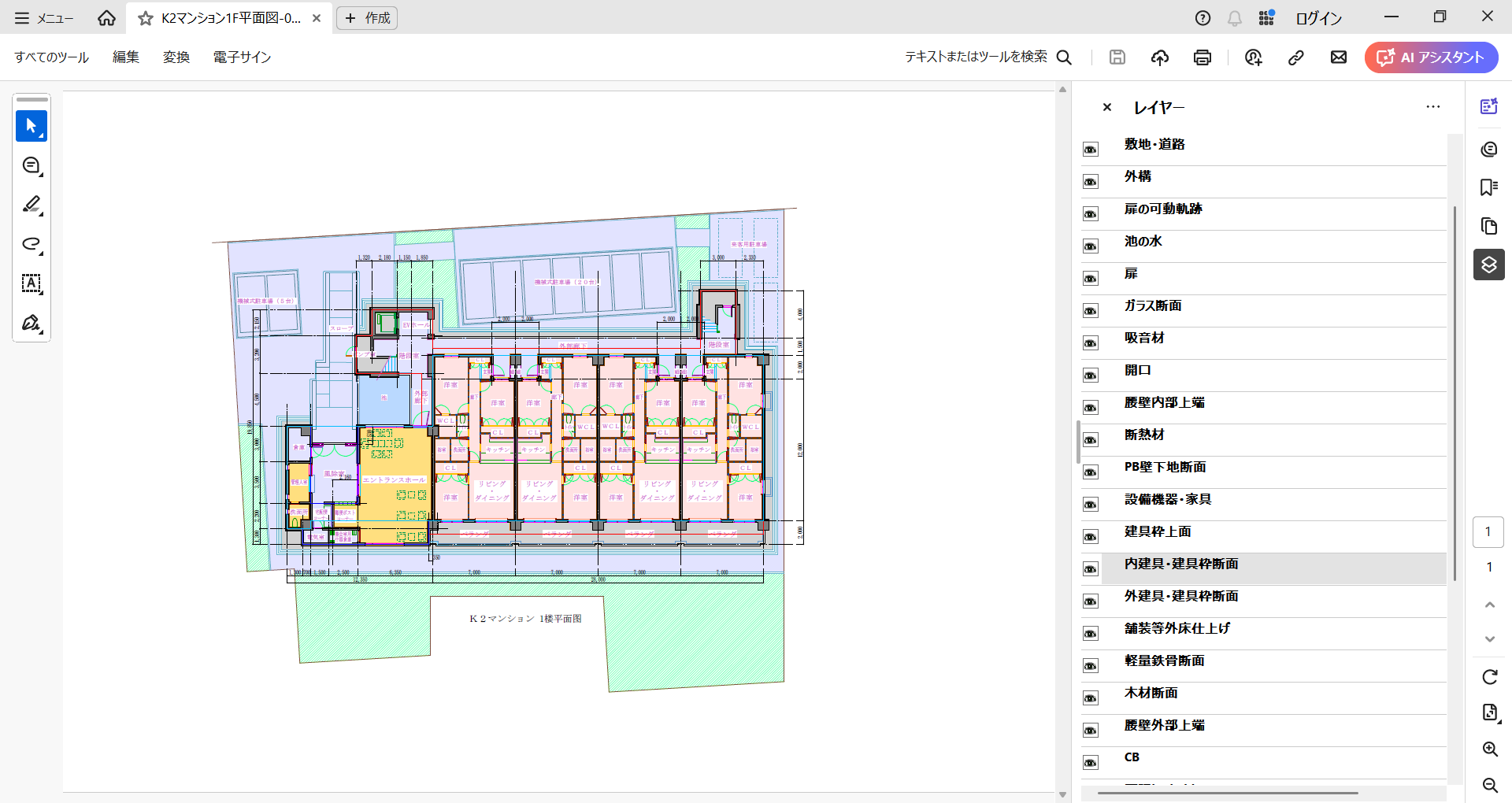 レイヤ分けしたPDFファイルで保存する方法について説明しています。