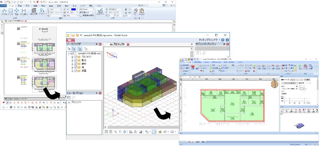 DRA-CADでは、「Model Assist」(モデルアシスト)を起動し、他のプログラムとの柔軟な連携を行えます。