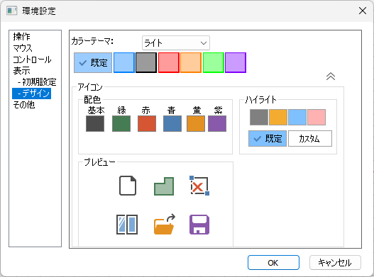 カラーテーマ(ライトモード、ダークモード)や、コマンドアイコンの配色をカスタマイズすることができます。
