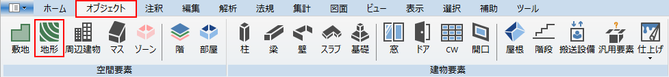リボンメニュー[オブジェクト]→[地形]