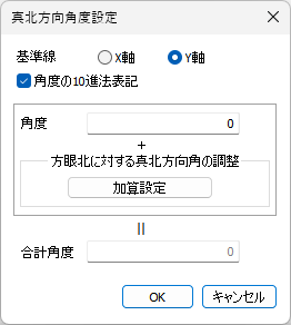 真北角度を10進数表記するかを設定します。チェックをはずすと度分秒で表示されます。