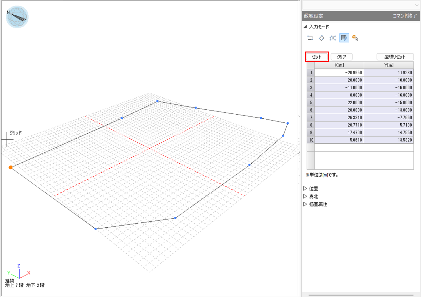 グリッドに入力されている頂点情報が、敷地形状としてセットされます。