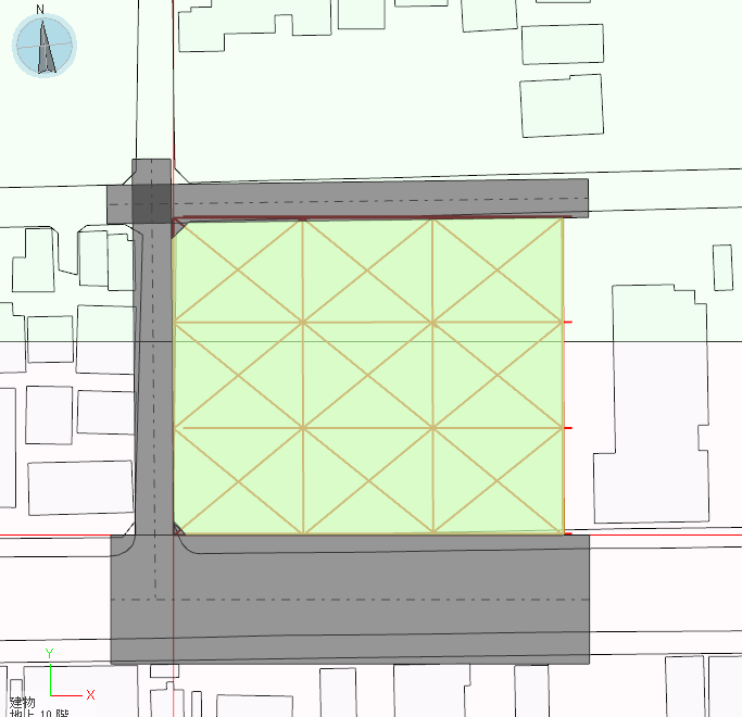 指定した分割数で敷地バウンダリー形状を分割しメッシュ配置します。