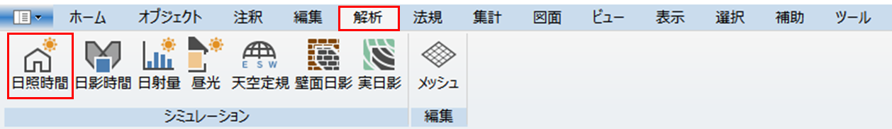 日照時間シミュレーションコマンドで使用する解析ビューの管理を行います。