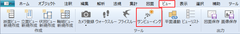 ビューの視点位置を太陽光の方向に設定して表示を行う機能です。