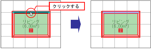 2)「全面開口」に ✔ を入れている場合は、壁上をクリックすると、全面開口が配置されます。