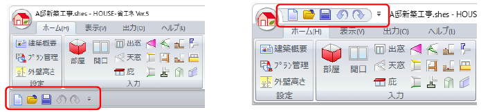きます。ただし、リボンの下に配置すると、作業領域が狭くなります。