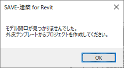 モデル開口が見つからないときに表示されます。新規プロジェクトで外皮テンプレートを参照してください。