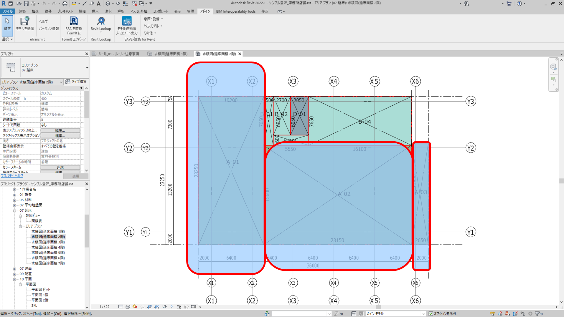 ・床面積集計表 (リンクエリアをレベル別に集計) |
