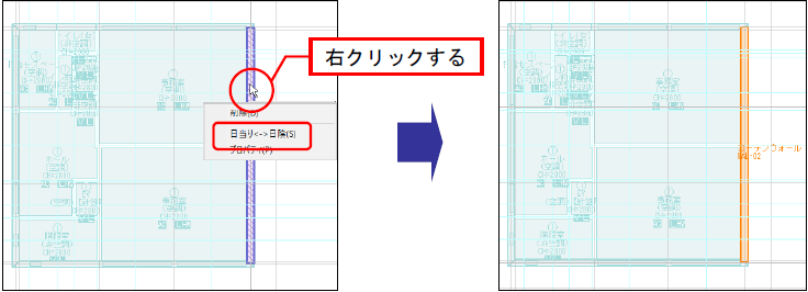 ※カーテンウォールを選択し、右クリックで表示したメニューからも日当りと日陰の切り替えができます。