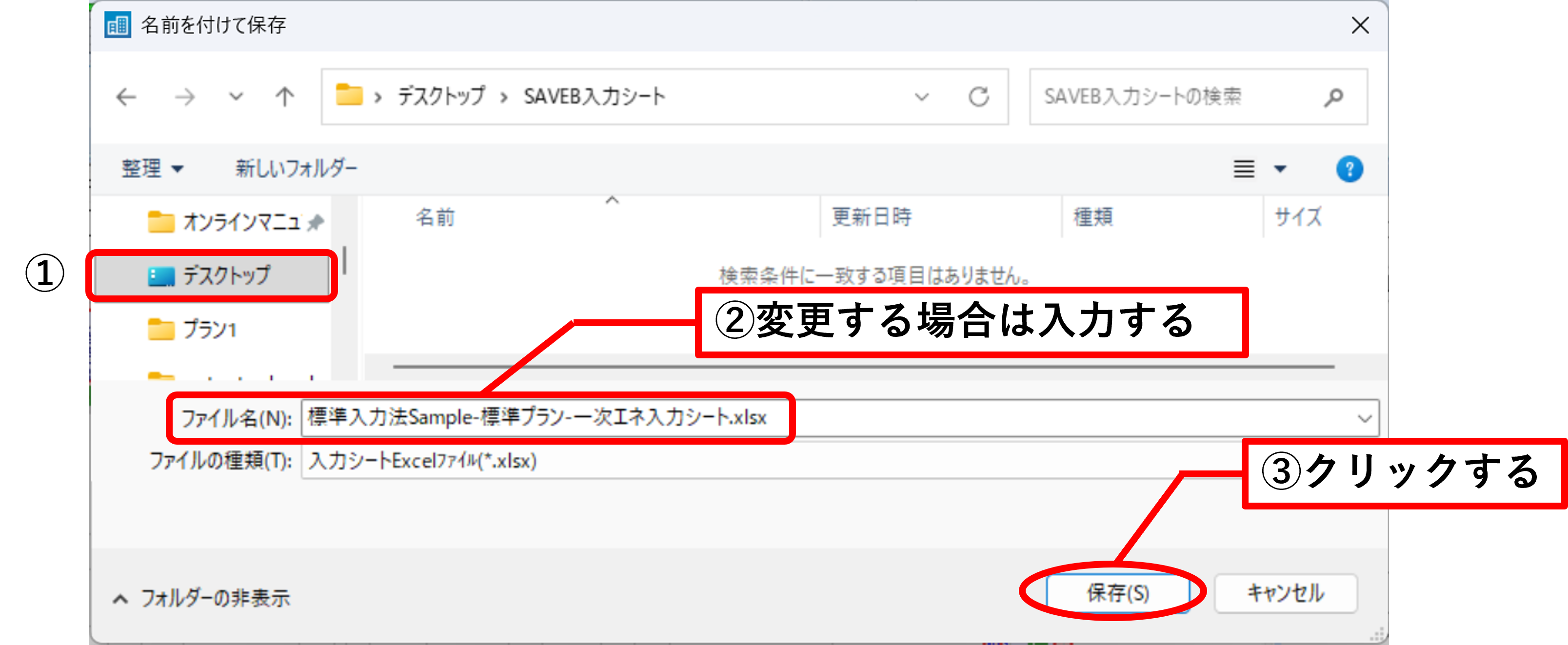 保存するドライブ、フォルダーを選択し、ファイル名を入力して、[保存]ボタンをクリックします。