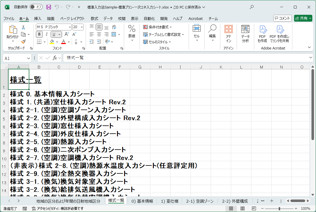 一次エネルギー消費量の入力シート、一次エネルギー消費量+PAL*の入力シートを出力する。