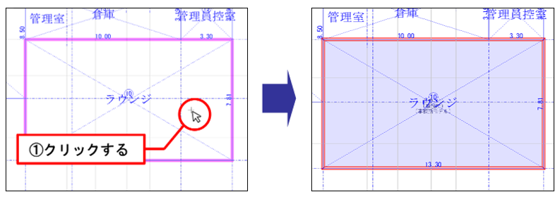 トレース図のポリラインから形状を取得し、部屋を作成します。