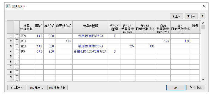 設定後、[OK]ボタンをクリックすると、建具リストに登録されます。