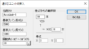 挿入する通り芯のスパン長や軸本数などを設定し、[OK]ボタンをクリックします。