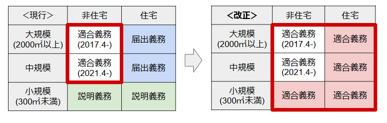 また、小規模建築物についても、これまで省エネ性能向上の努力義務に加えて説明義務が加わりました。