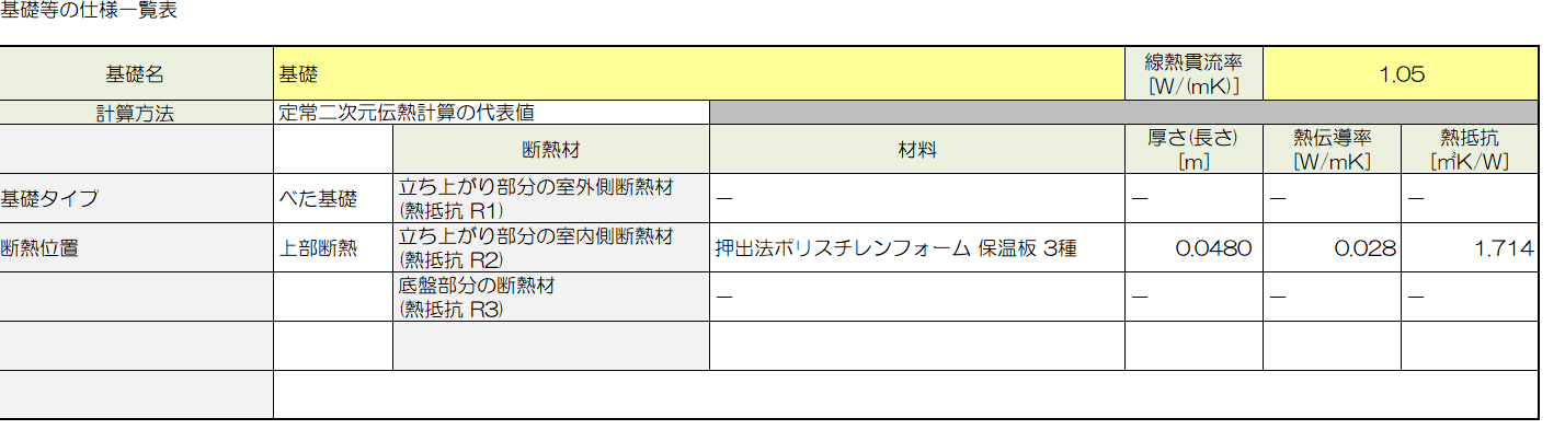 | 断熱材 | 基礎の断熱材が表示されます。 |