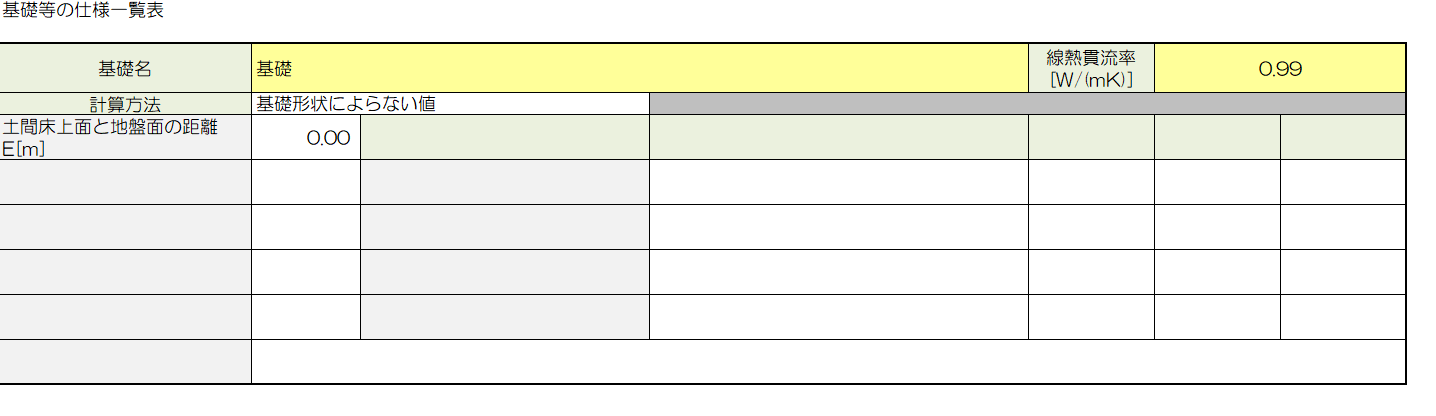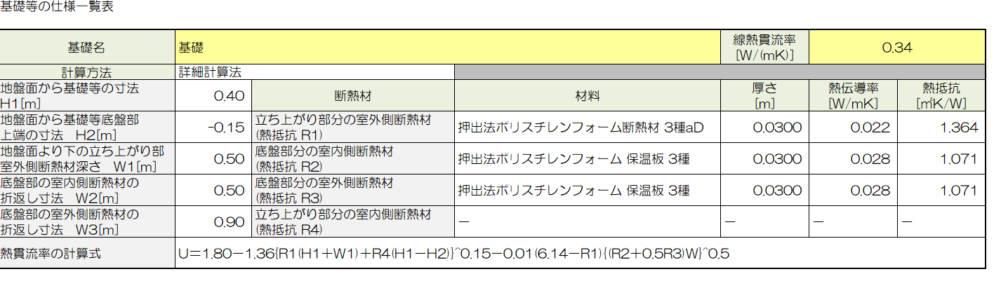 土間床上面と地盤面の距離によって決定した線熱貫流率の値が表示されます。