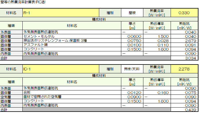 一般部と熱橋部を合わせた熱貫流率が表示されます。 | ||