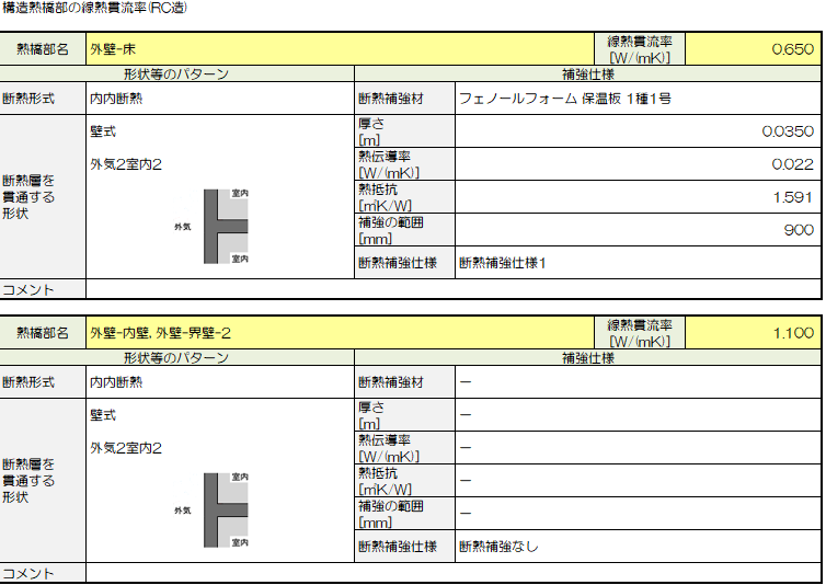 | 補強仕様 | 断熱補強材 | 熱橋オブジェクトに指定された断熱補強材が表示されます。 |