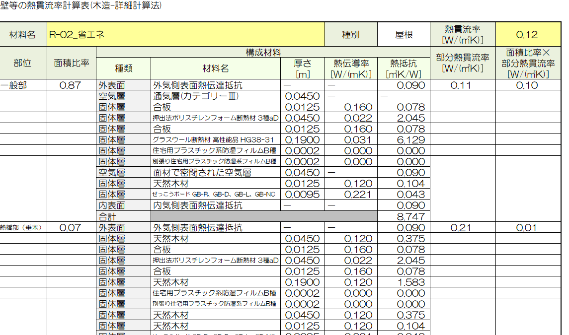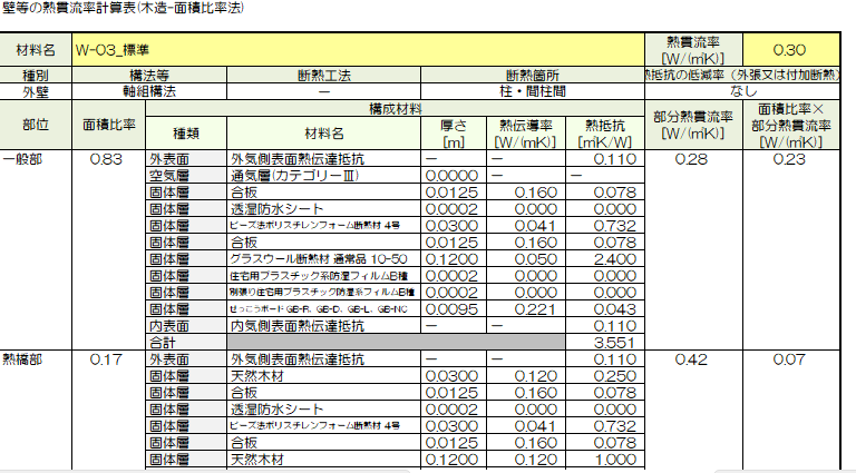 一般部と熱橋部それぞれの面積比率×部分熱貫流率の値が表示されます。 | ||