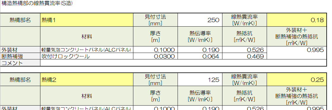 一般部と熱橋部それぞれの部分熱貫流率が表示されます。 | ||