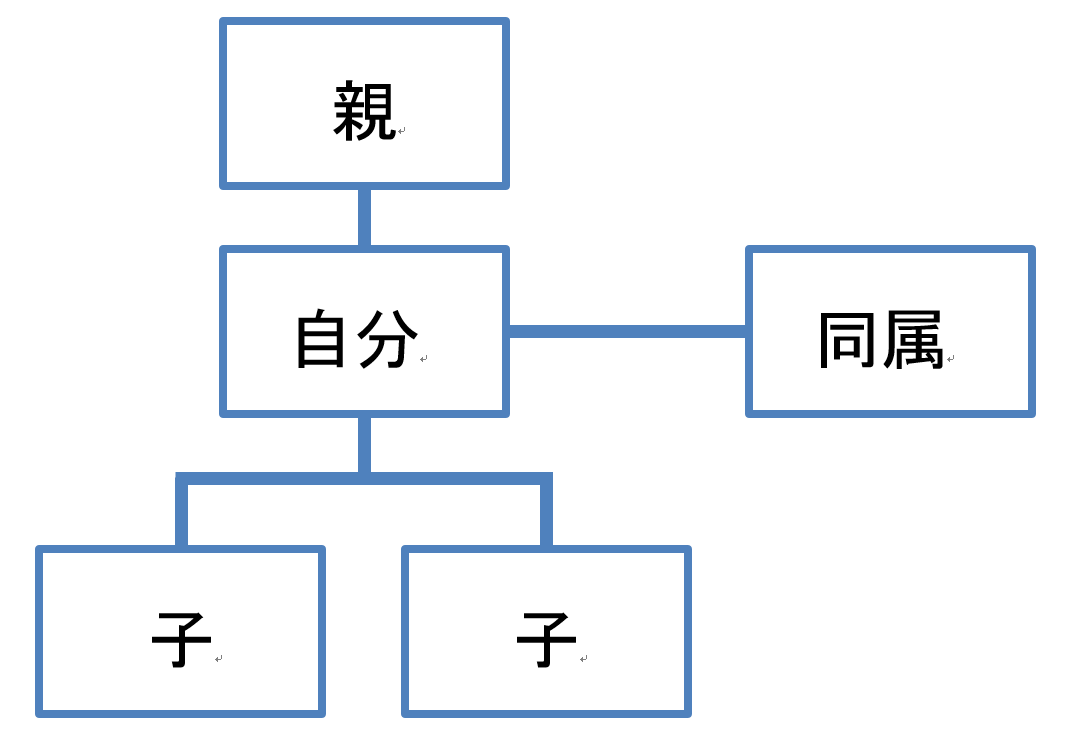世代欄では、以下のように自分から見た親、子、同属の属性で表示されます。