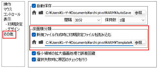 (ファイルメニュー→[環境設定] [その他]ページ)