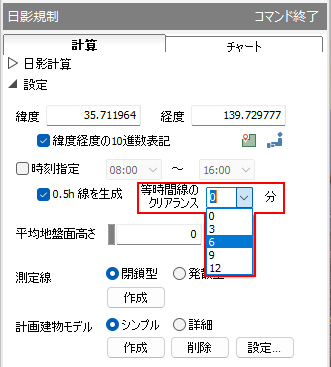 日影規制時間に対して指定した時間分、余裕を持った状態で等時間線を計算します。
