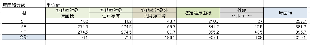 部屋の属性に床面積分類を追加し、部屋に設定された床面積分類で面積表を出力することができます。
