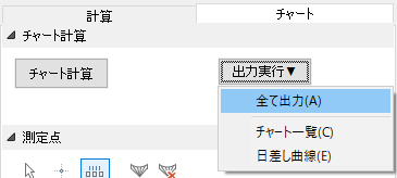 「チャート計算」タブの「出力実行>全て出力」を実行します。