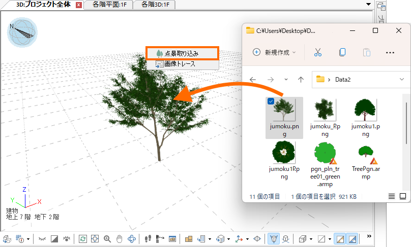 2つ目は、画像ファイルを点景として取り込む方法です。