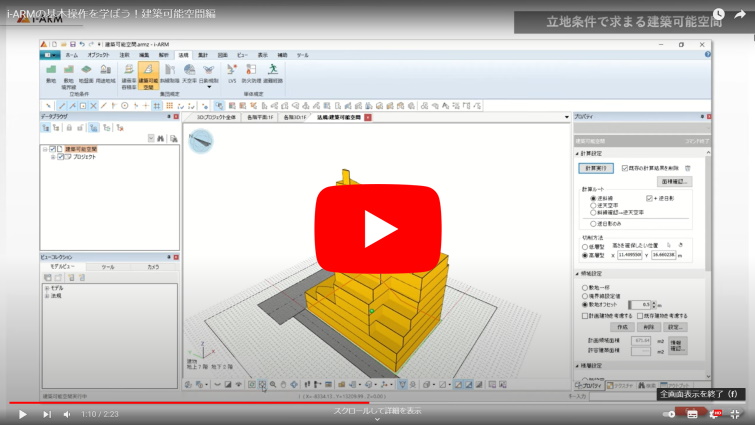 建築可能空間の算定に必要な設定を行います。敷地境界線の設定、用途地域の設定、階の設定を確認し建築可能空間を生成します。