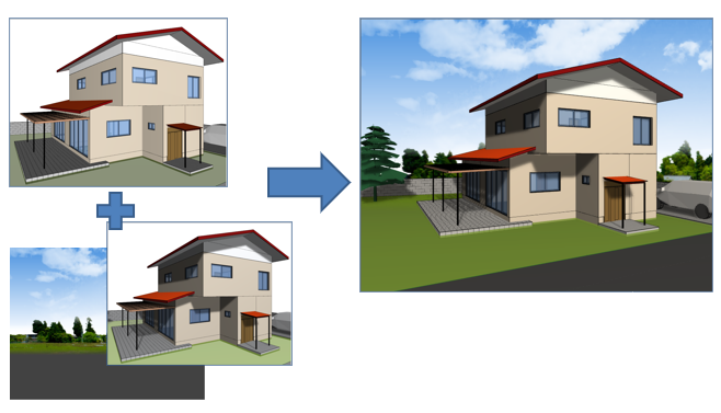 写真素材サイトなどからダウンロードした画像を点景として利用することができます。